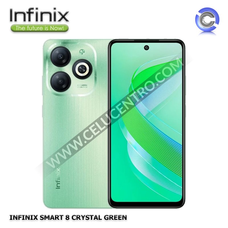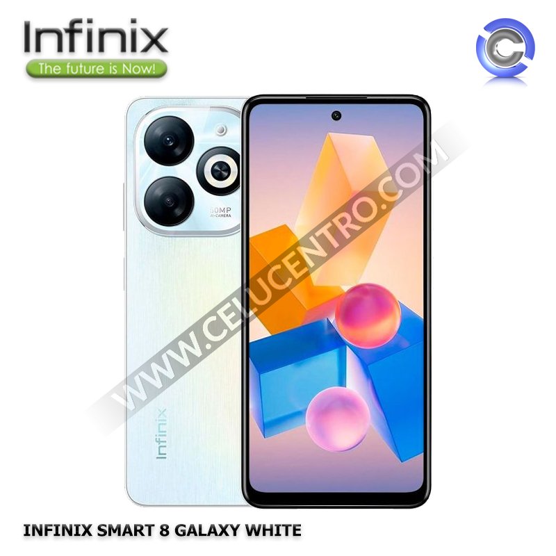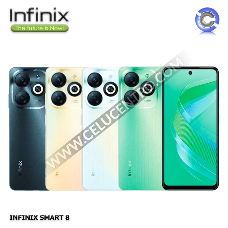 Infinix Smart 8 es un smartphone de 2024. Su tamaño es 163.6 mm (Alto) por 75.6 mm (ancho) con un grosor de 8.5 mm. Tiene una pantalla IPS LCD de 6.6″. La resolución es de 720 × 1612 pÃxelesy una densidad de los pÃxeles de 0 ppi . La cámara frontera singular de 8 MP. La cámara trasera doble de 13 MP, Æ’/1.9 ( Gran angular ) y 0.3 MP ( Lente Auxiliar ). Su procesador Unisoc T606 (12 nm)+ con una microarquiectura de 4x 2.2 GHz – Cortex-A53 y 4x 1.8 GHz – Cortex-A53 con versiones de 64GB 4GB RAM y 128GB 8GB RAM y 256GB 4GB + 4GB de RAM con ram dinamica.