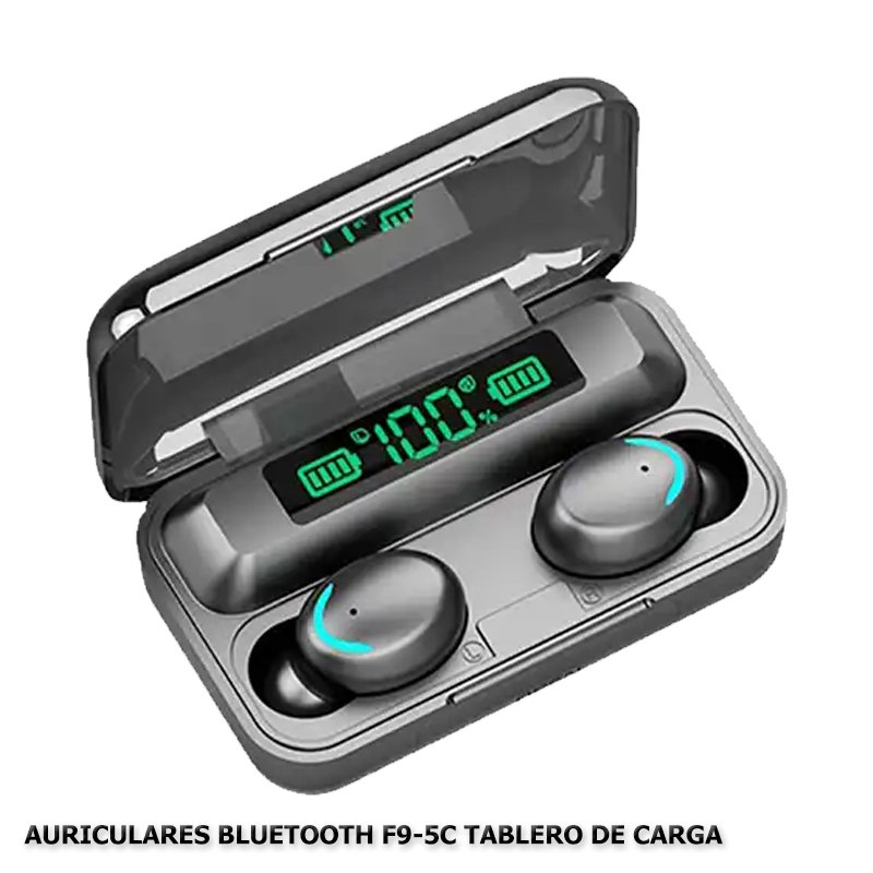 audifonos bluetooth 5.0 recargables con bateria de 420mha y compatibilidad con dispositivos Android, Ios y Huawei, sistema de contestar llamadas con boton tactil, material plastico IP 63 (no apto para hundiduras) con duracion de bateria aproximada de 8 horas continuas, estuche de carga, cable de carga e instructivo .