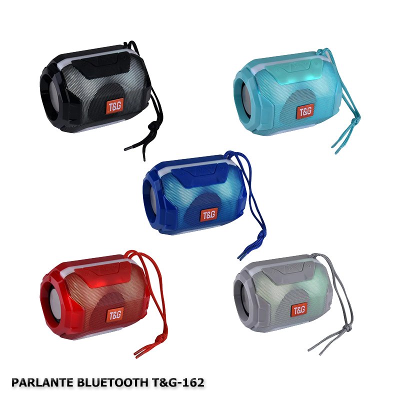 El parlante T&G TG 162 cuenta con una bateria de 1000MAH con una duracion de hasta 3 – 4 horas continuas de uso con un alto parlante de 5V de salida con funcion de radio, conexion bluetooth para dispositivos IOS y Android, slot para usb y memoria sd, cuenta con un diseño sencill y pequeño que le permite ser transportado de manera facil con una correa para sujetarlo , incluye cargador y manual de instrucciones Tamaño: 28*11*12cm​