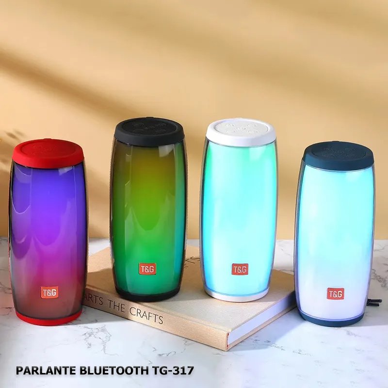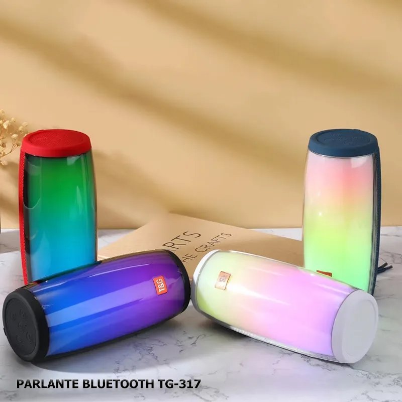 El parlante T&G TG 317 cuenta con una bateria de 1000MAH con una duracion de hasta 3 – 4 horas continuas de uso con un alto parlante de 5V de salida con funcion de radio, conexion bluetooth para dispositivos IOS y Android, slot para usb y memoria sd, cuenta con un diseño sencill y pequeño que le permite ser transportado de manera facil con una correa para sujetarlo , incluye cargador y manual de instrucciones