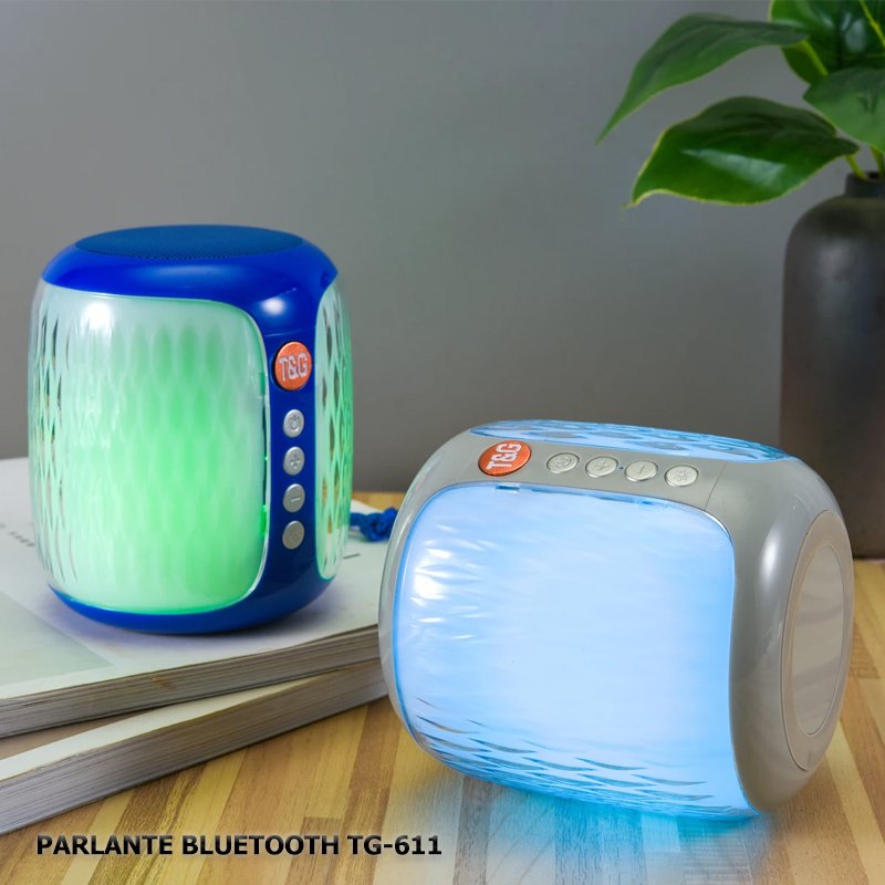 El parlante T&G TG 611 cuenta con una bateria de 500MAH con una duracion de hasta 2 – 4 horas continuas de uso con un alto parlante de 5V de salida con funcion de radio, conexion bluetooth para dispositivos IOS y Android, slot para usb y memoria sd, cuenta con un diseño sencill y pequeño que le permite ser transportado de manera facil con una correa para sujetarlo , incluye cargador y manual de instrucciones