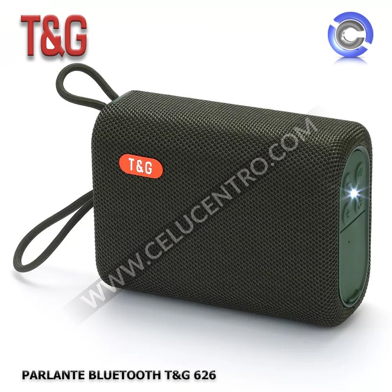 El parlante T&G TG 626 cuenta con una bateria de 1200MAH con una duracion de hasta 9 horas continuas de uso con un alto parlante de 5V de salida con funcion de radio,conexion bluetooth para dispositivos IOS y Android, slot para usb y memoria sd, cuenta con un diseño sencill y pequeño que le permite ser transportado de manera facil con una correa para sujetarlo , incluye cargador y manual de instrucciones.