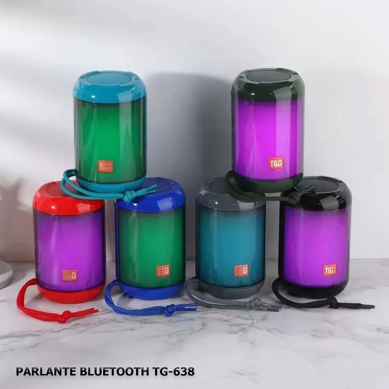 El parlante T&G TG 638 cuenta con una bateria de 500MAH con una duracion de hasta 2 – 4 horas continuas de uso con un alto parlante de 5V de salida con funcion de radio, conexion bluetooth para dispositivos IOS y Android, slot para usb y memoria sd, cuenta con un diseño sencill y pequeño que le permite ser transportado de manera facil con una correa para sujetarlo , incluye cargador y manual de instruccionesTamaño de una sola máquina: 87*88*135MM